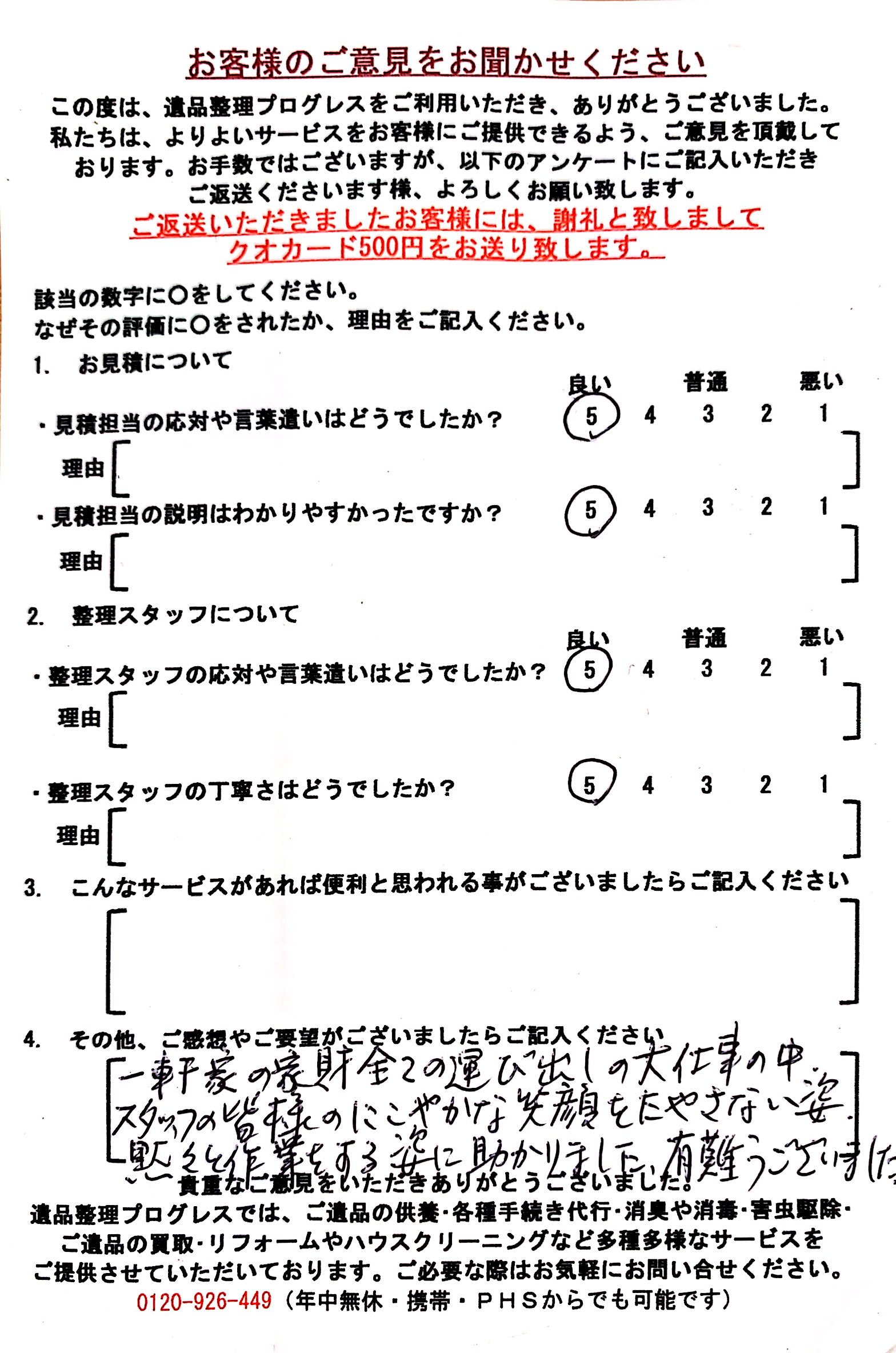 この度は遺品整理で大変お世話になりました。 お見積りや…